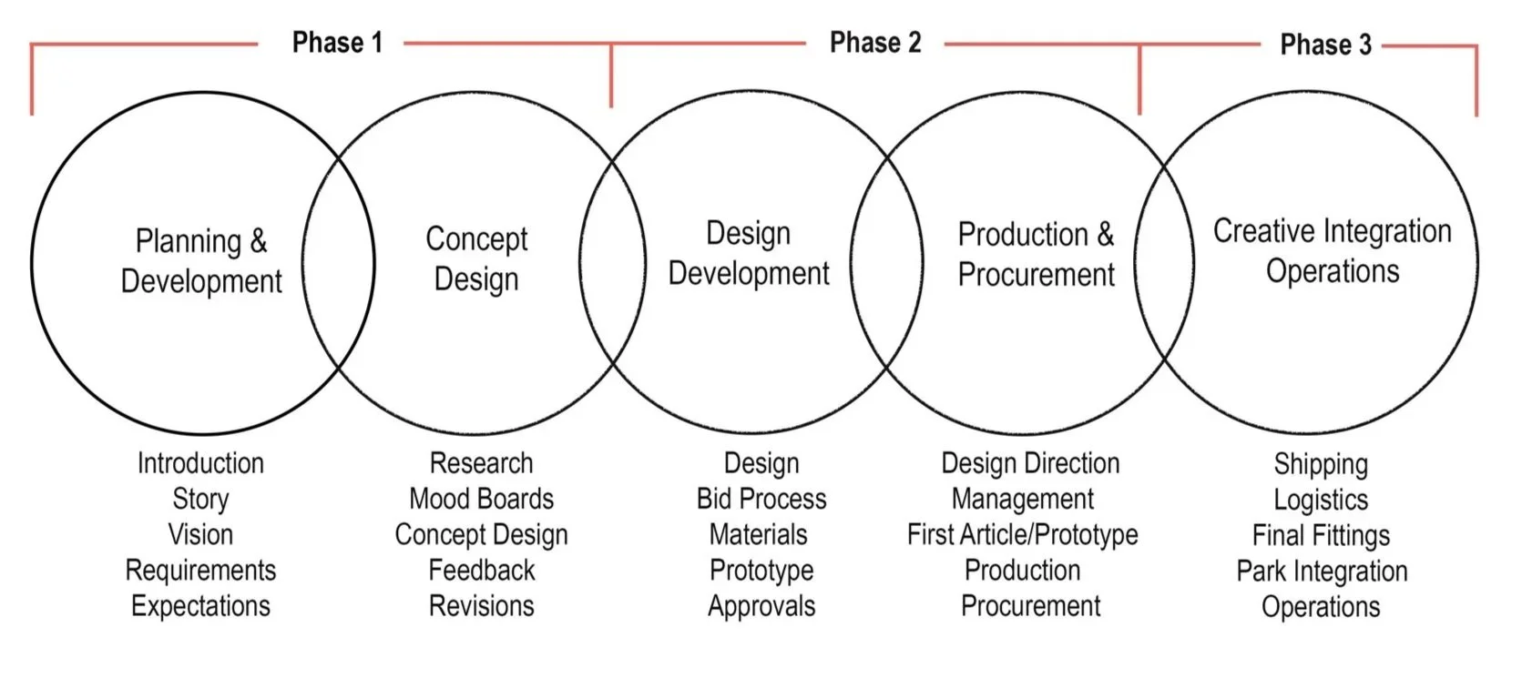 Along with design, our experienced creative managers source, procure, and direct the RFP process. We coordinate timeline and schedule with international and domestic fabricators. We collaborate on prototyping, production, and inventory fulfillment. We contribute our expertise to the master planning of costume and wardrobe facilities. TCC can provide valuable insight on physical space allocation, storage, distribution systems, maintenance requirements, and dressing areas. Upon completion of production, we direct the integration of the costumes and wardrobe into operational use.